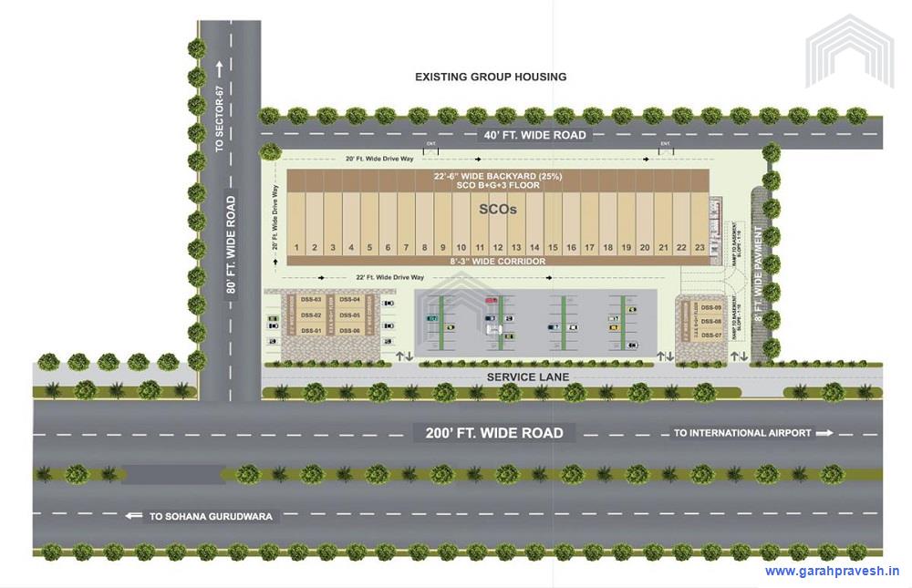 3-Side Open Project, adjoined with 80 ft. Wide Service Lane