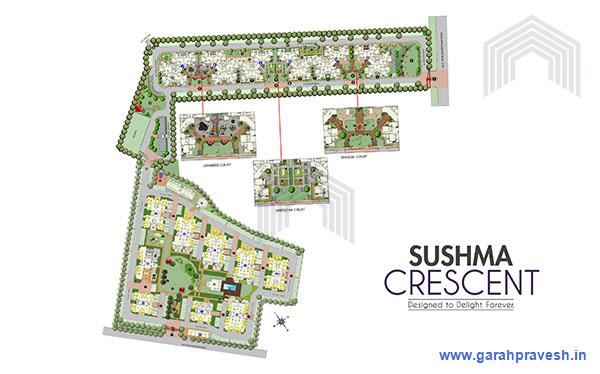 Crescent by Sushma Buildtech at Zirakpur, New Chandigarh Chandigarh has been making headlines in the new project launches updates for Chandigarh for the various meticulously residential options it provides. Crescent by Sushma Buildtech is conveniently priced across various budgets and is ideally located to ensure residents' comfort and a higher living quotient. The project offers residential units with top-class specifications that meet the expectations of the lifestyle of the urban population, yet Crescent ensures well-being and easy life with all the needful residential facilities for the property owners in this project. Crescent by Sushma Buildtech ensures a modern yet contemporary lifestyle at the same time. The project is well equipped with all modern amenities and 24*7 security services to facilitate the needs of the residents. With its offerings of 3 and 4 BHK residential apartments with areas ranging 1310-2380 sq ft., these residences mark Crescent as one of the most detailed yet affordable residential projects in Zirakpur, New Chandigarh.